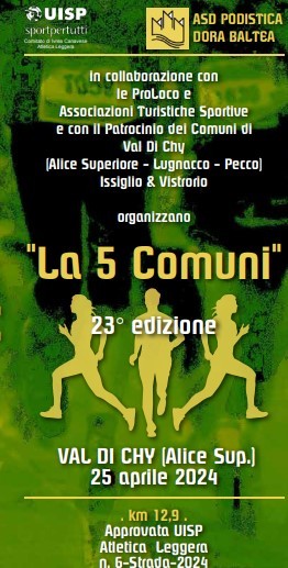 Gara di corsa tra 5 comuni della Valchiusella (Alice Superiore, Lugnacco, Pecco, Issiglio, Vistrorio) su strada di circa 12,9 km con percorso collinare del Campionato Canavesano UISP, con partenza e arrivo ad Alice Superiore (Val di Chy).