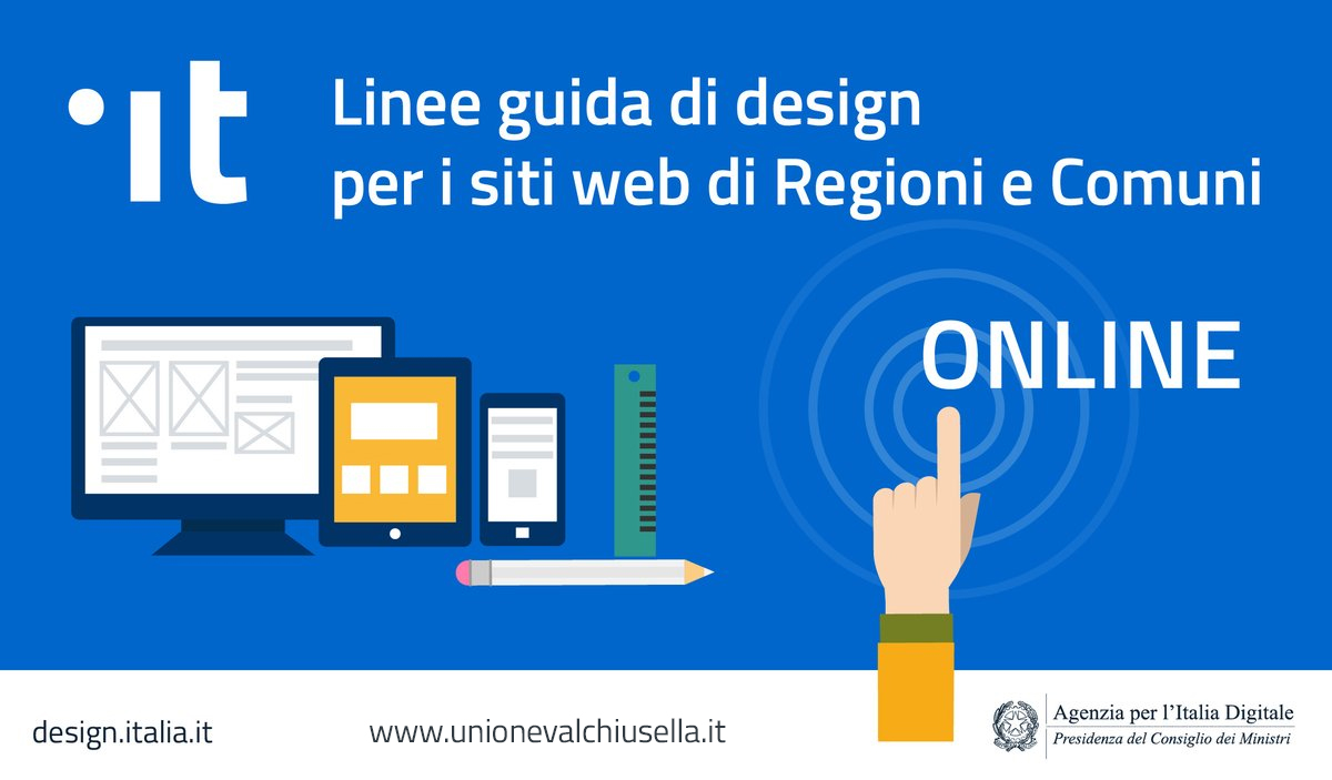 Le nuove linee guida redatte dall'AgID (Agenzia per l'Italia Digitale) hanno l’obiettivo di definire standard web di usabilità e design condivisi da tutta la Pubblica Amministrazione: il nuovo sito web fornisce una grafica coerente, un’architettura dell’informazione semplificata e funzionale e una standardizzazione dei principali elementi.